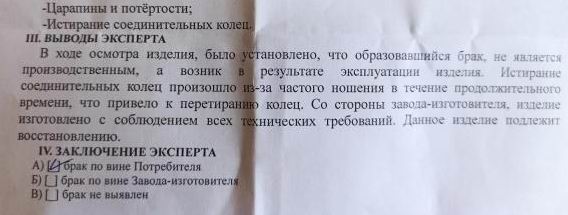 02 марта 2019 (уже после отпуска) я обратилась в магазин, где продавцы учтиво предложили отправить кольцо на экспертизу. Сегодня получила заключение «независимого» эксперта, утверждающее, что виновата я.