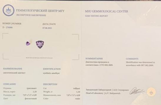 Я все же по рекомендации магазина отправил камень на экспертизу в геммологическую лабораторию МГУ, которая подтвердила, что камень является синтетическим. Заключение приложено на фото.