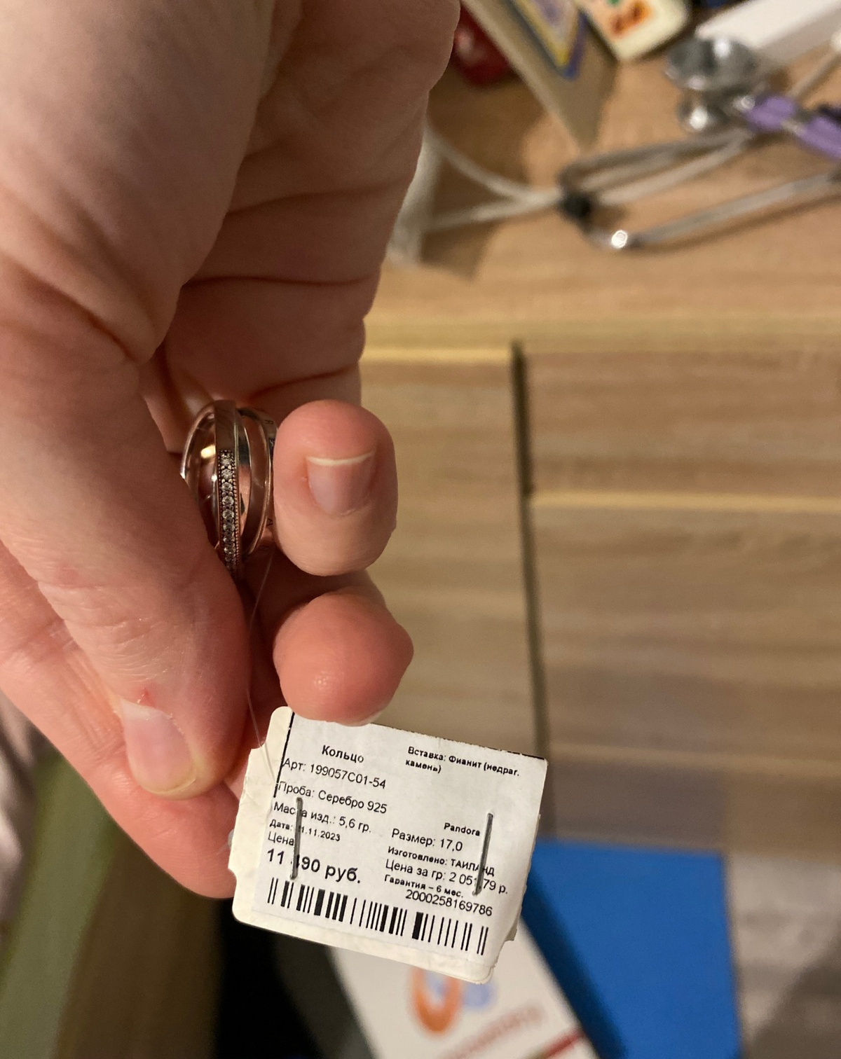 Через день поехала в Panclub в «Пассаже», чтобы купить ребенку сережки. Показала продавцу купленное на «Озоне» кольцо. Она сразу сказала, что это подделка. Сказала, что их кольцо желтоватое, оно такое и должно быть. А мое прямо серебристое, такое оно не может быть. Сказала, что Panclub и Pandora никогда не продавала через «Озон», только через их приложение, сайт, магазины сети. Убедила меня, что мое кольцо можно легко сдать, так как интернет-заказы ювелирных изделий принимают к возврату, есть такой закон.